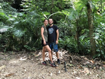 Celá procházka trvá 2 hodiny. Ve skupince nás bylo 6 + 1 průvodce, který doslova hnal. (Bez průvodce tohle ani nezkoušejte!) Nejprve jdete džunglí a šplháte po žebřících. Některým chybí příčky. Někde se jen přitahujete lanem. Před vstupem do jeskyně dostanete čelovku. V jeskyních na vás čekají další žebříky a úzké štěrbiny. Některými se musíte plazit. Někde procházíte po úzkých prknech, většina z nich zlomených, tak dbejte vysoké opatrnosti. Dost to tam také klouže, je tam vysoká vlhkost a dusno. Na druhou stranu je to velký zážitek. Jeskyně je v některých místech opravdu veliká a potkáte tak stovky netopýrů a pavouků, ale pořádných pavouků. Jedna slečna z naší skupiny v té nejužší štěrbině viděla pavouka a zasekla se tam asi na 15 minut, že prostě dál nepůjde. Po dlouhém přemlouvání to nakonec zvládla.