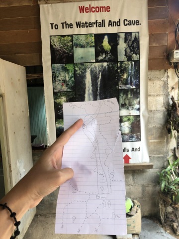 Vstupné je 100 nebo 150 bahtů na osobu, to už si nejsem jistá a určitě běžte bez průvodce. U pokladny dostanete mapu. Tužkou nakreslenou mapu na linkovaný papír vytržený z bločku, kterou pokladní překresluje přímo před Vámi. Docela jsem se obávala toho, zda někam vůbec dojdem.
