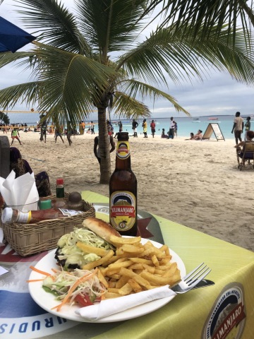 Jídlo průměrné. Spíš tu spoléhají na to, že jsou na skvělém místě. Personál se moc nezajímá. Přímo na veřejné pláži. (viz 3.foto - hamburgera pivo na pláži)
